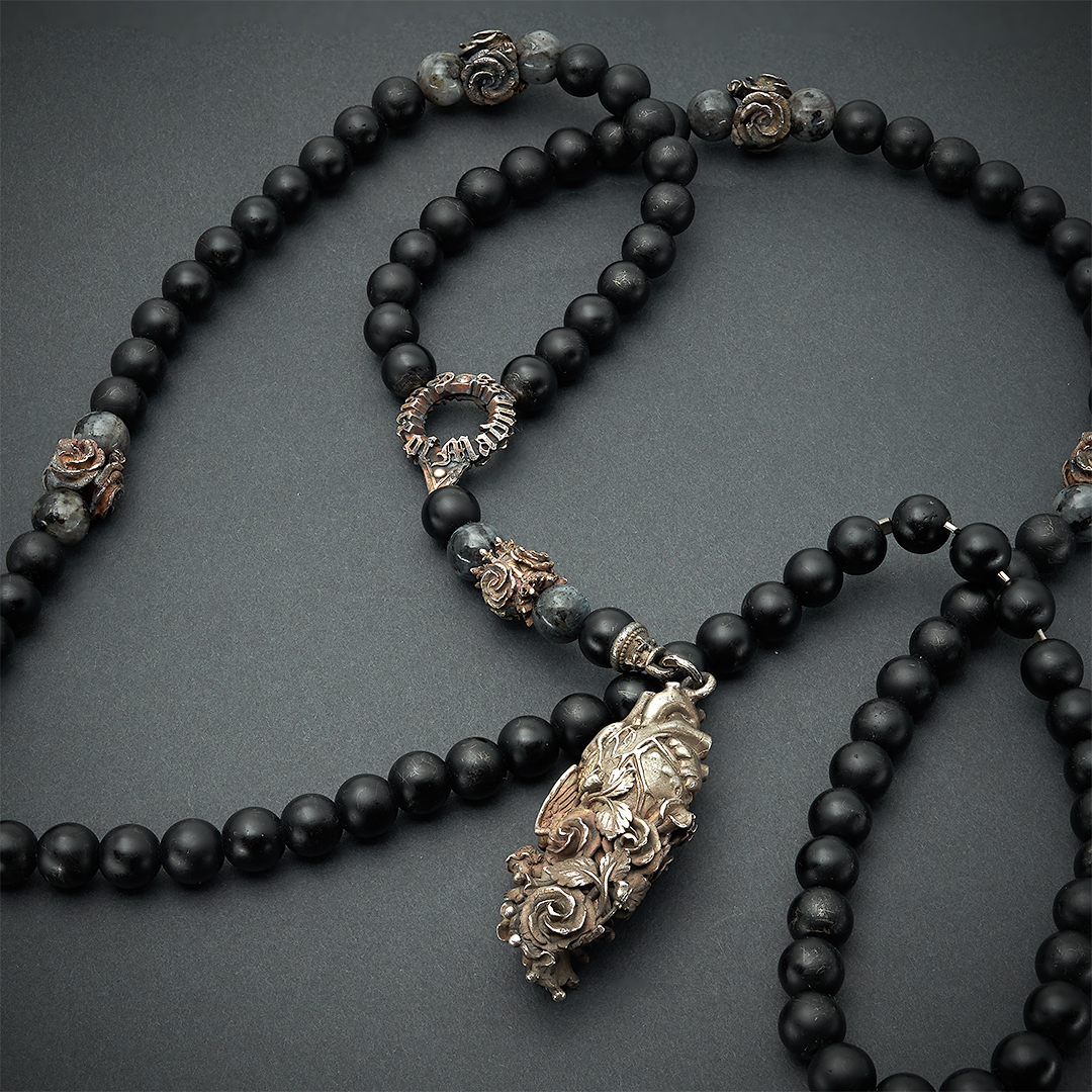 Авторская подвеска "Бог в сердце моём" на бидсах из шунгита и лабрадорита.