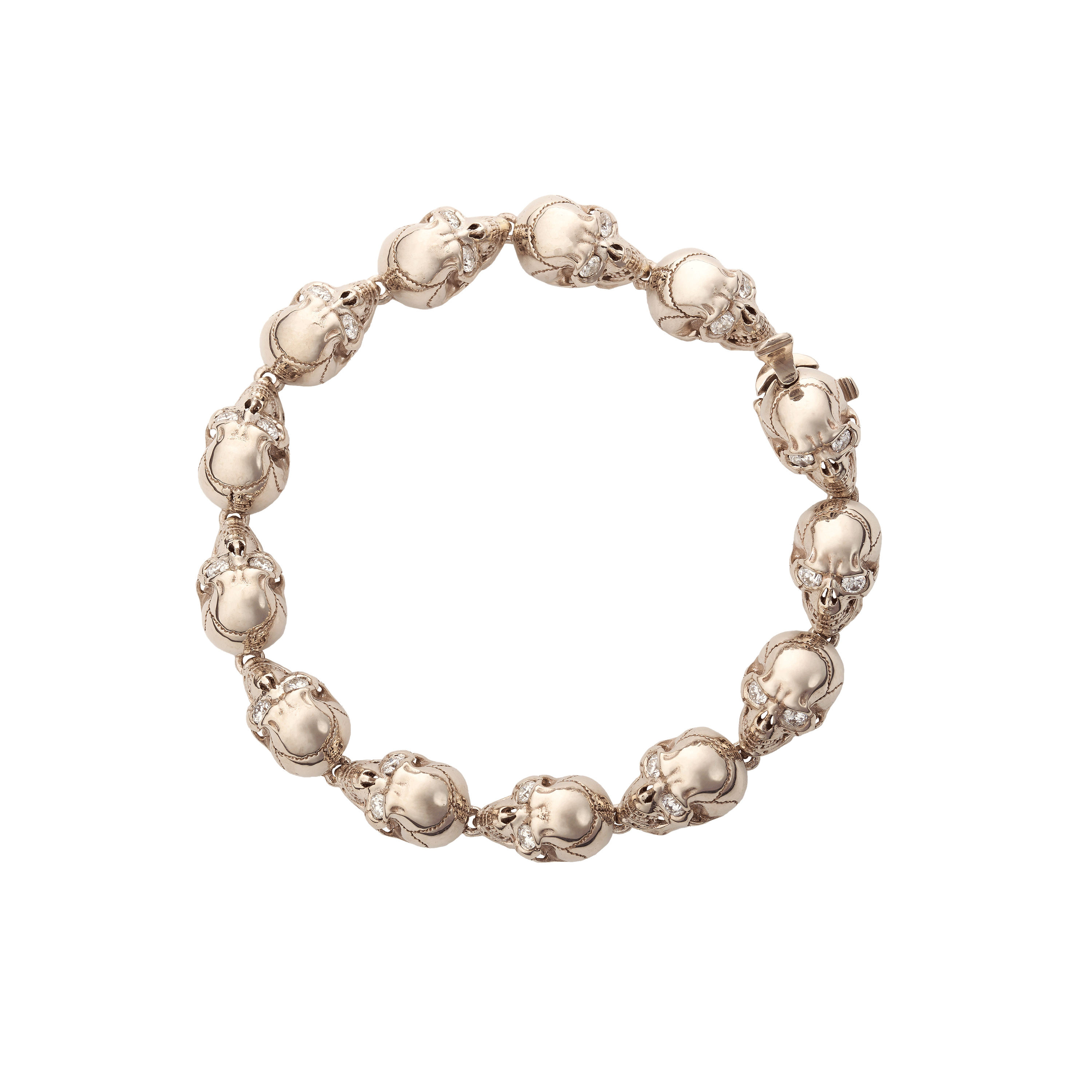 Браслет с черепами  в белом золоте с муассанитами - яркий и элегантный одновременно!