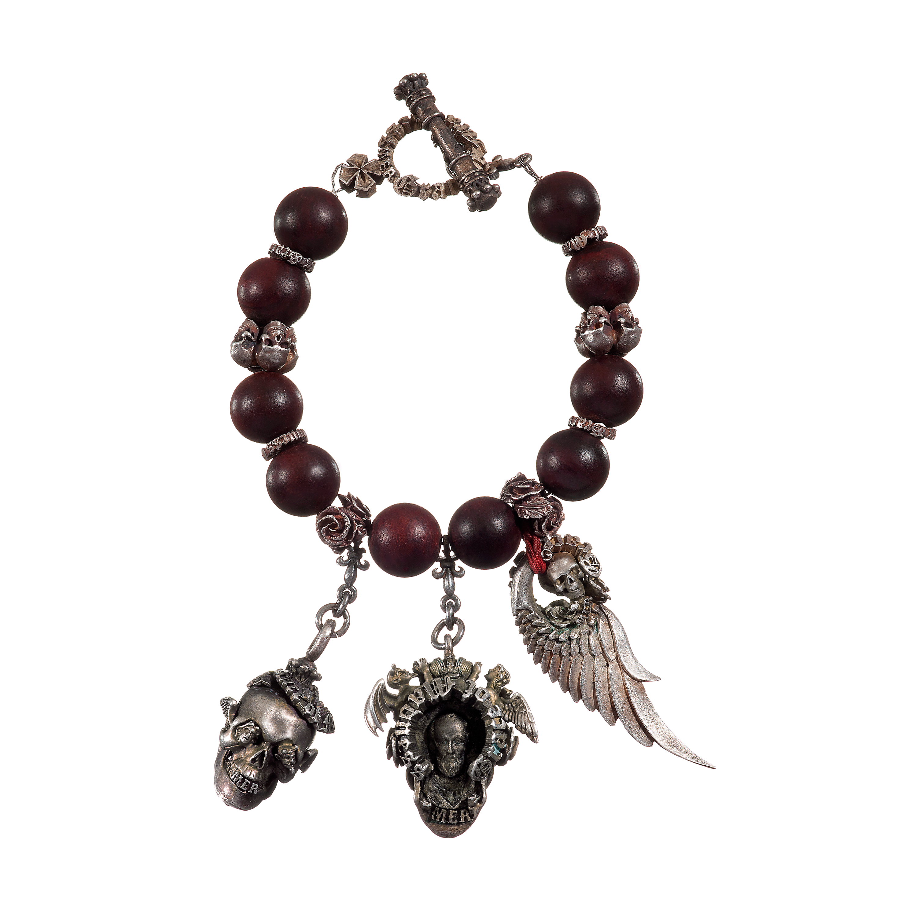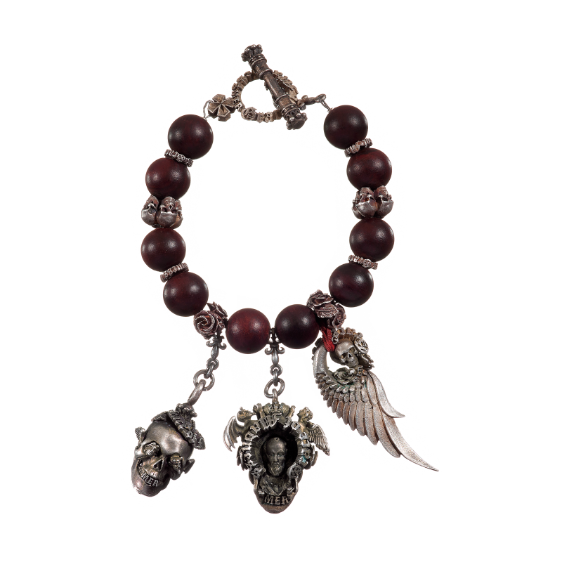 В этих браслетах символы нашей вечной внутренней борьбы сквозят на уровне материалов и образов: череп и роза, крылья ангелов и демонические лики, дерево и металл – вечные противоположности, созданные единой природой. Ищи гармонию в столкновении стихий.
