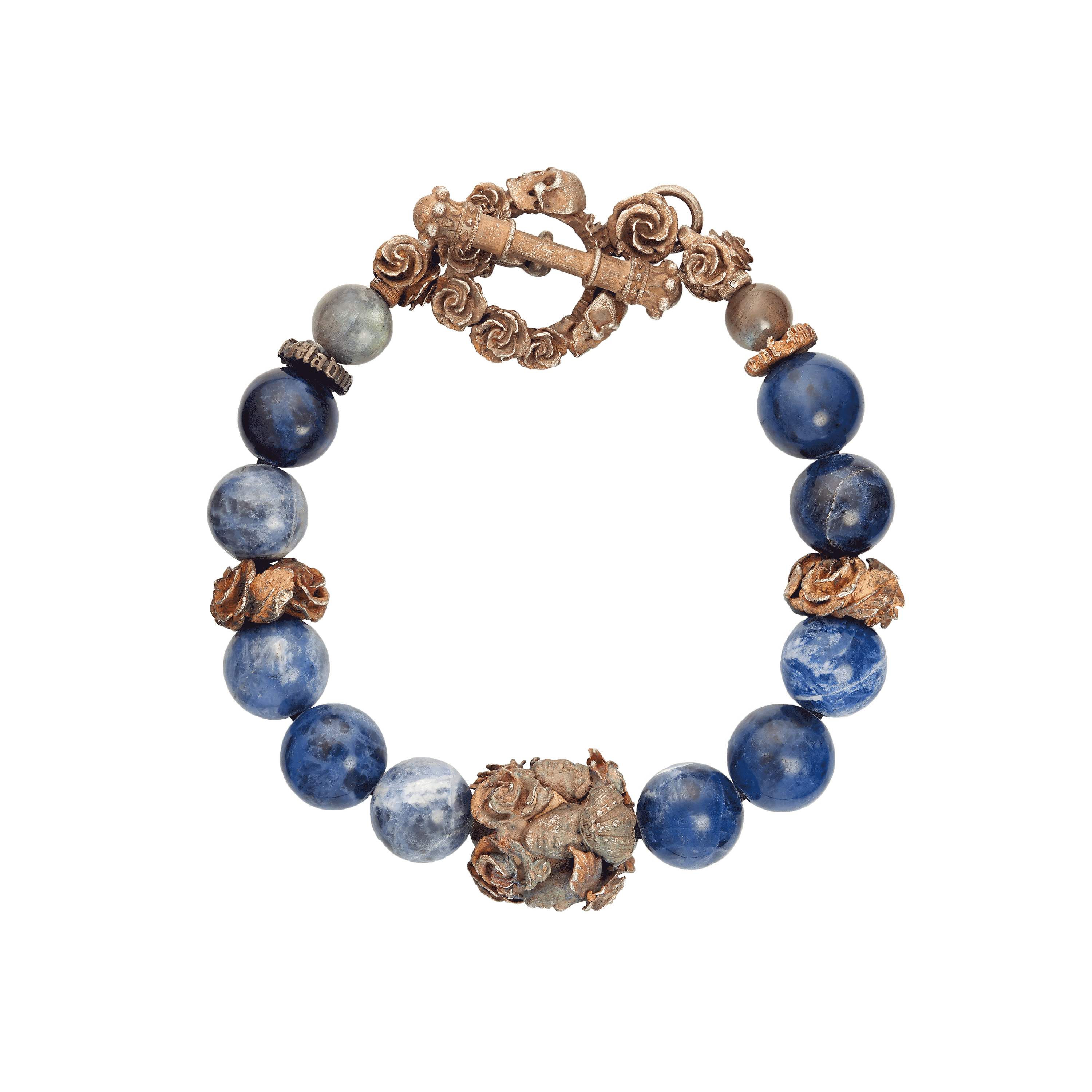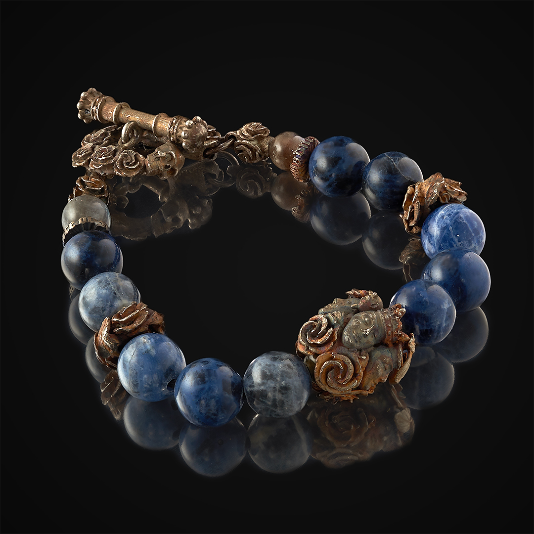 Авторский серебряный браслет из содалита и лабрадорита