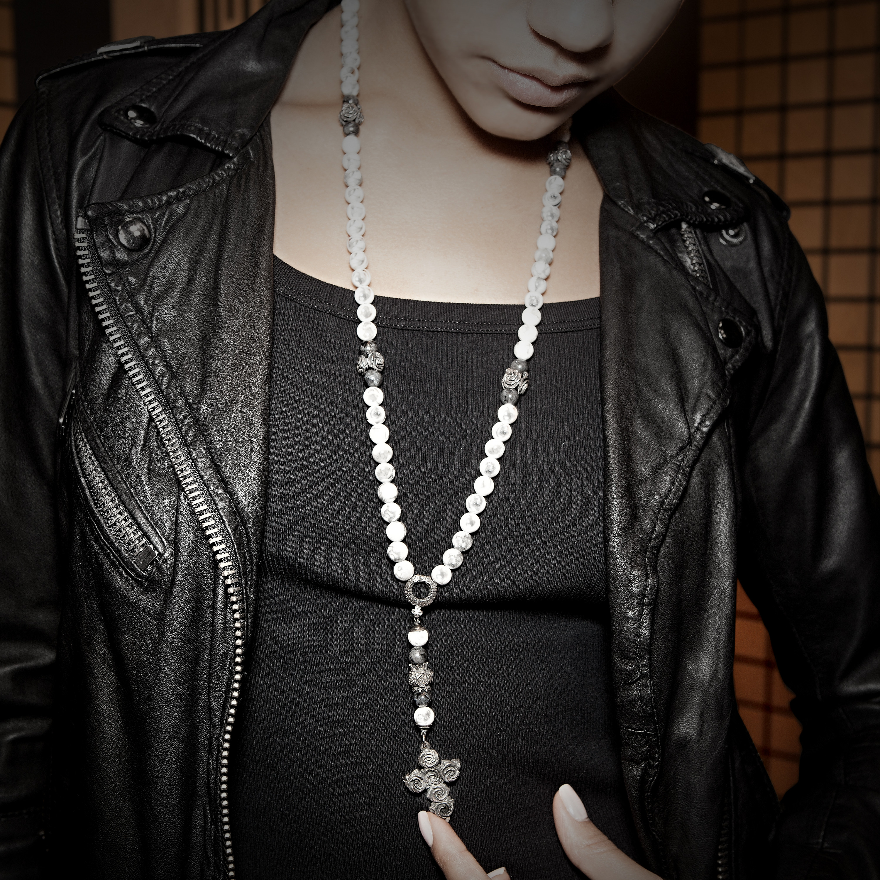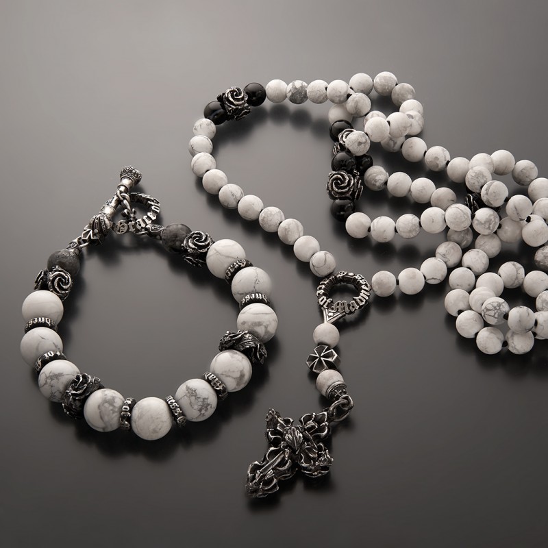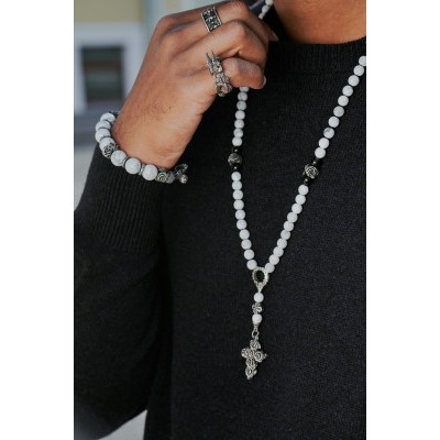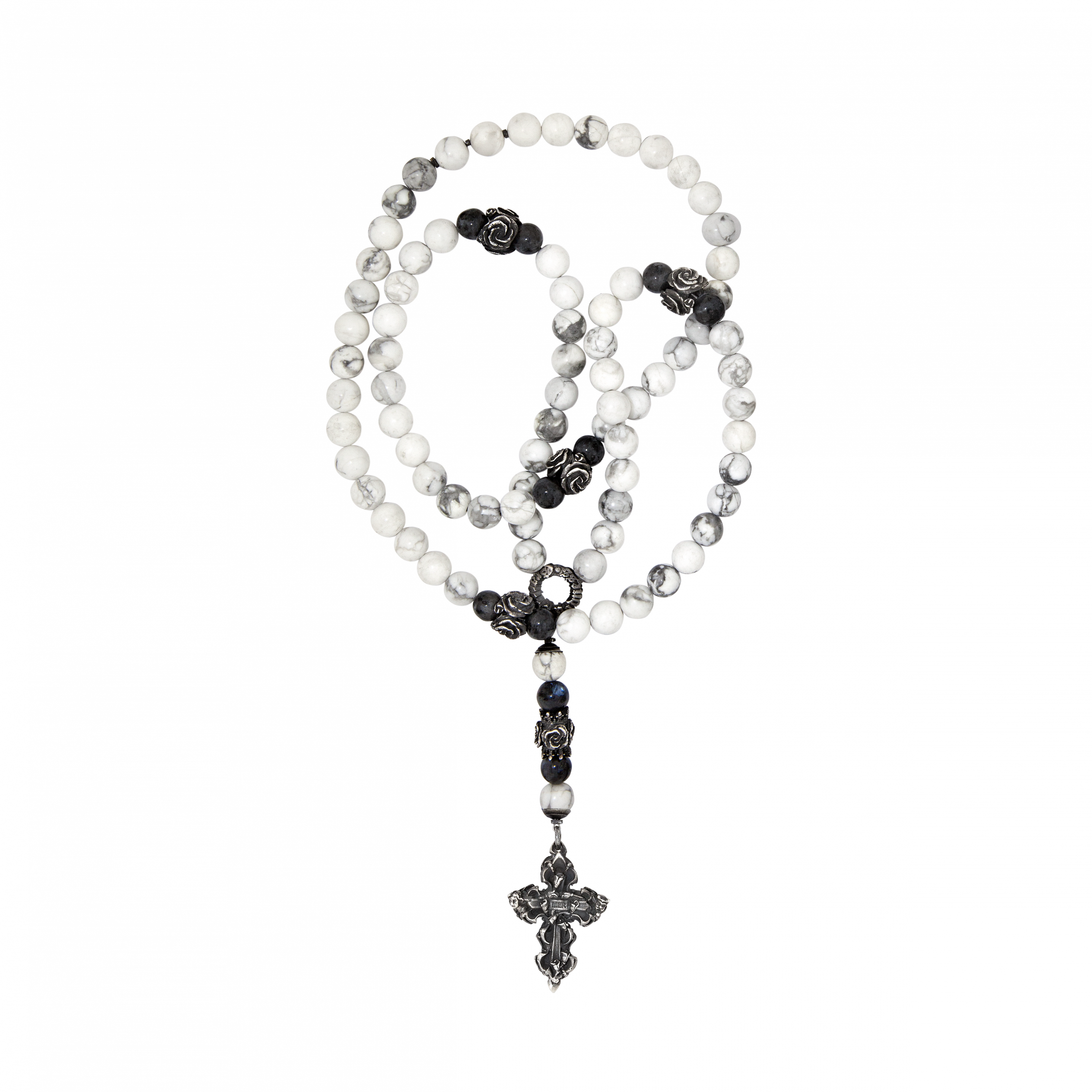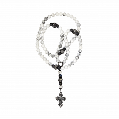 Бидсы (розарий) из черененого серебра и кахолонга,