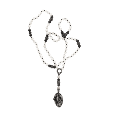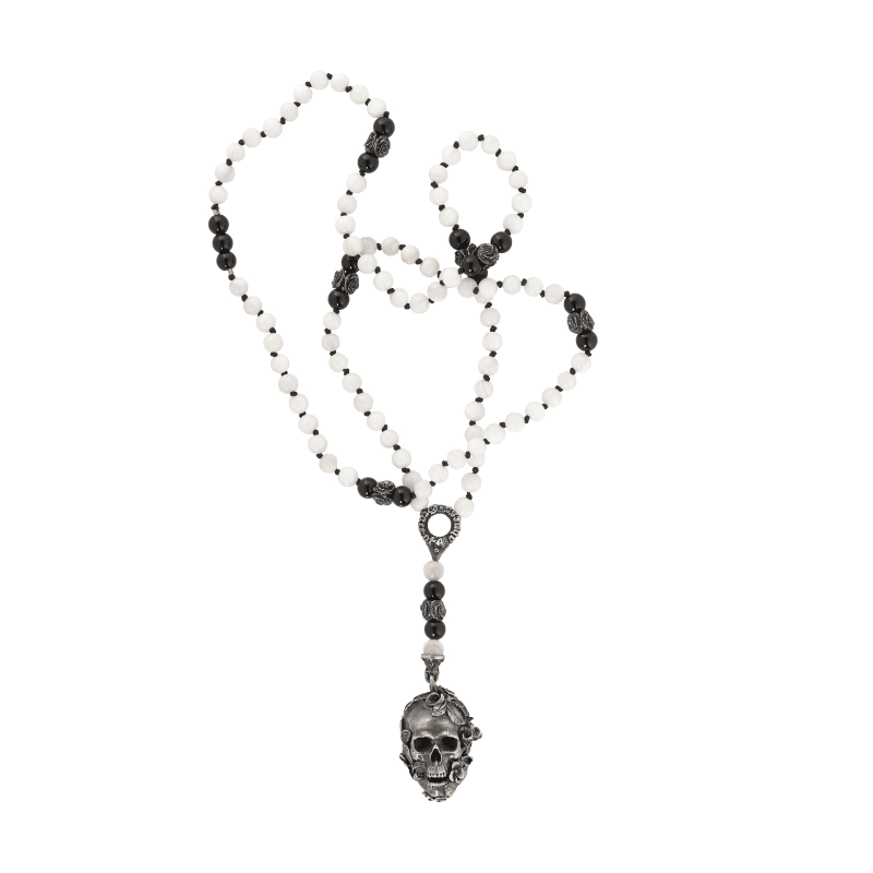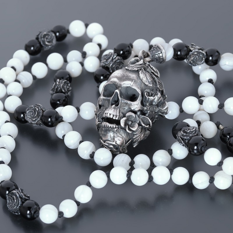 Авторская подвеска "Череп"  на бидсах из перламутра и  чёрного оникса.
