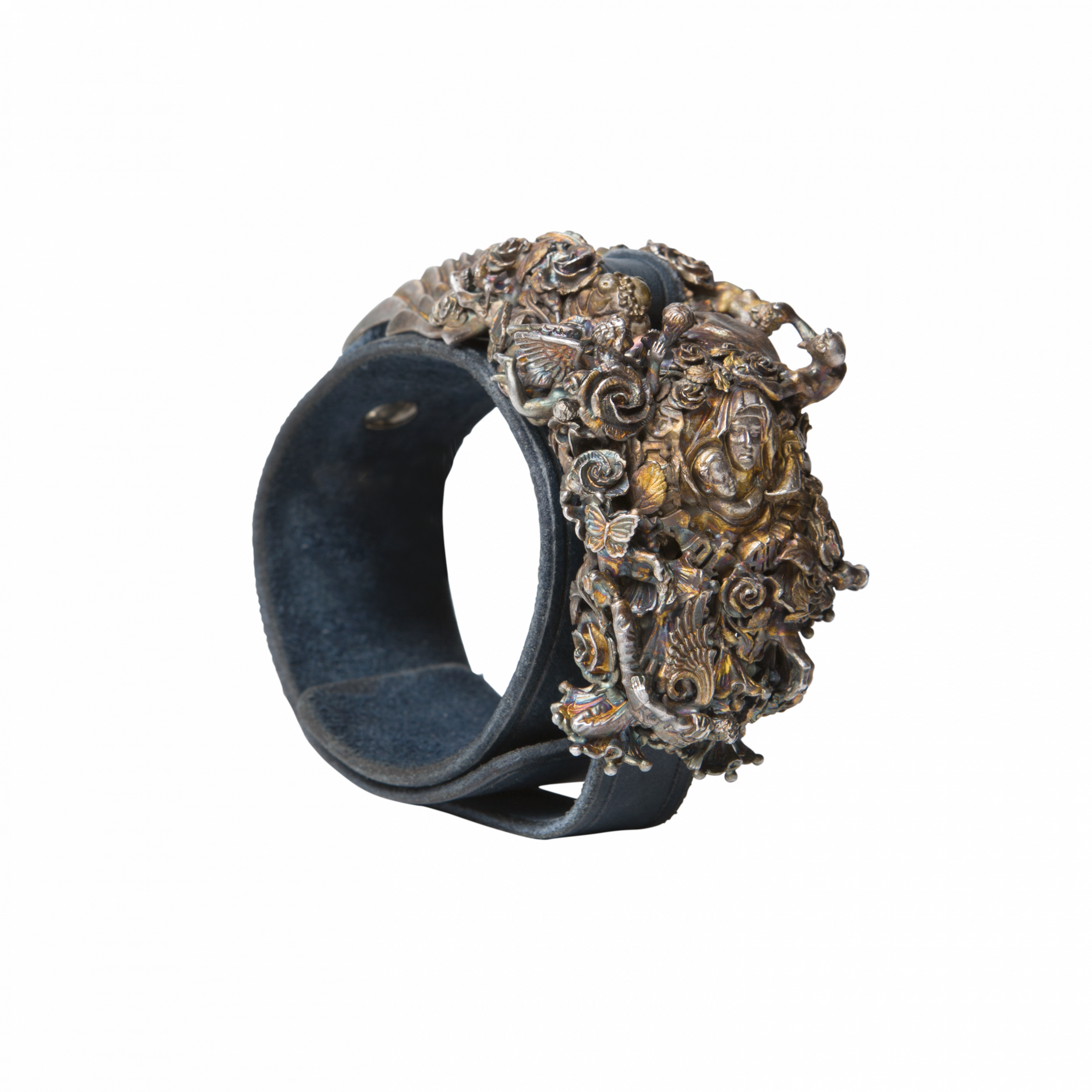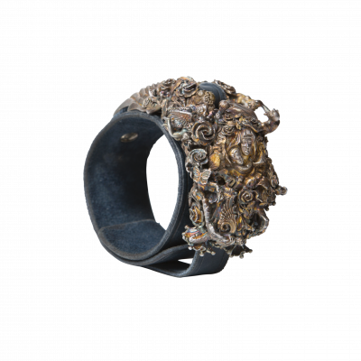 Эксклюзивный кожаный  браслет с серебряной мини-скульптурой.