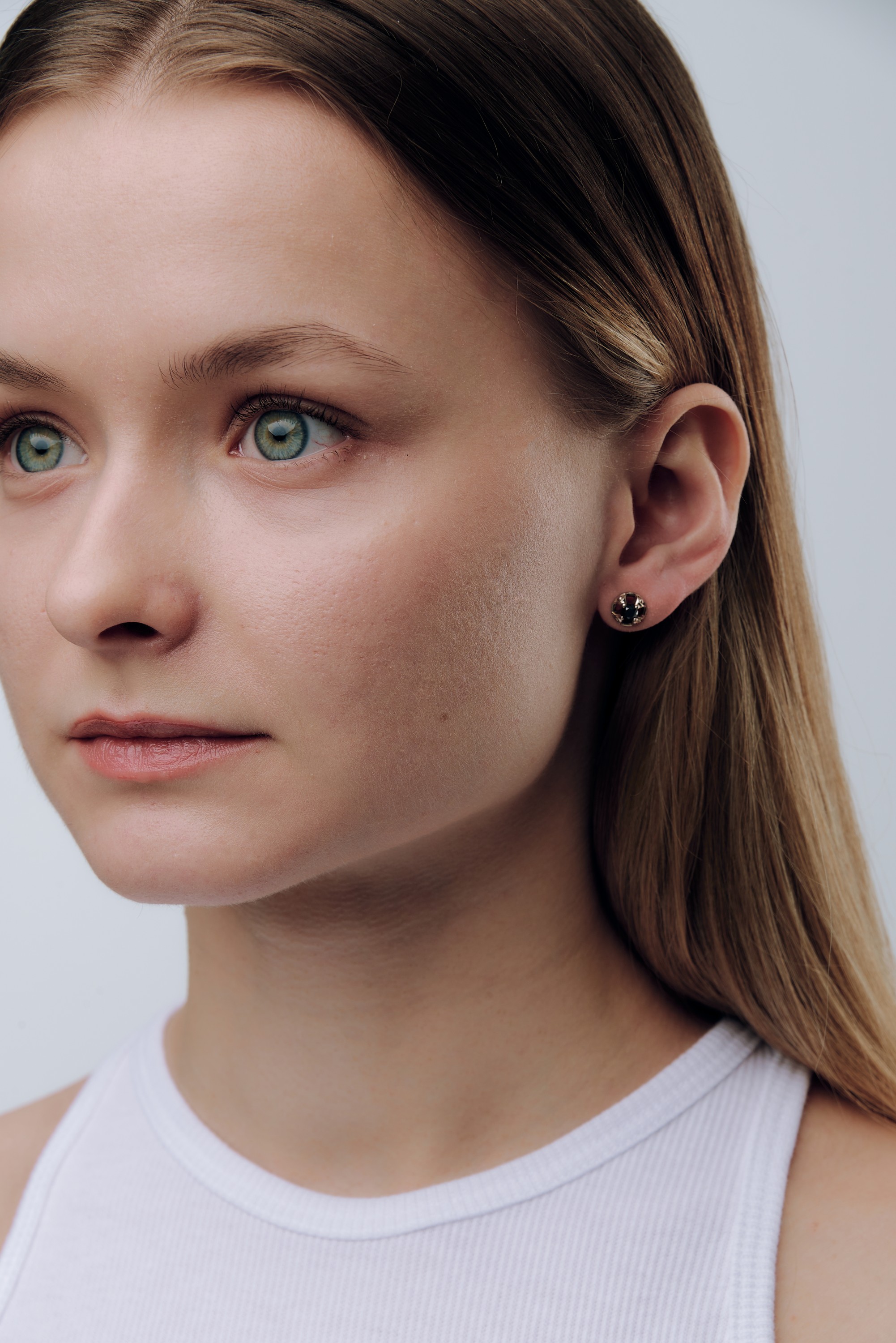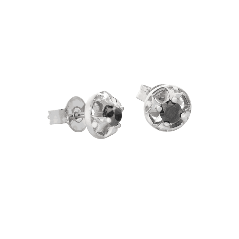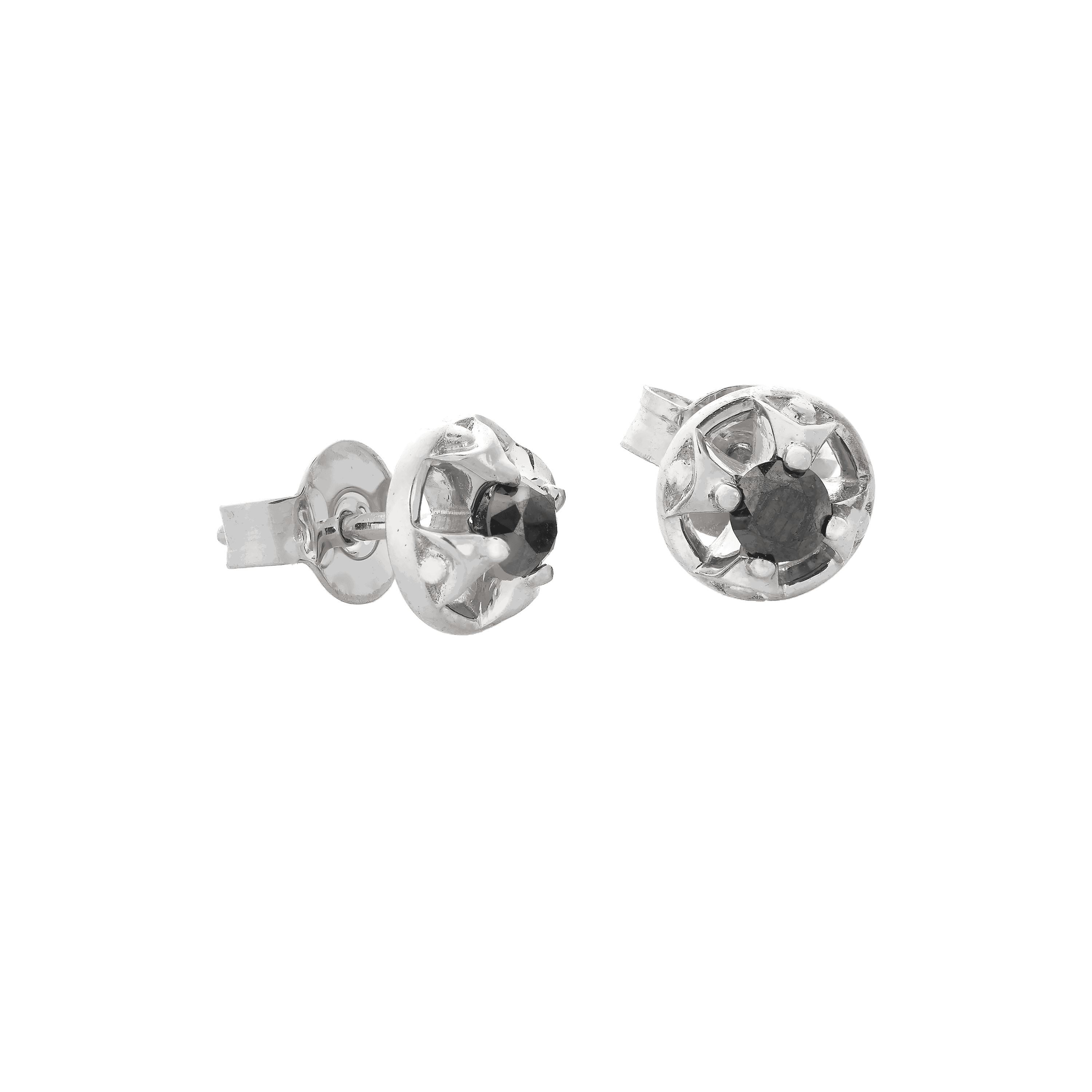 Серьги-пусеты выполнены из золота 585 пробы покрытие белым родием с чёрными бриллиантами.