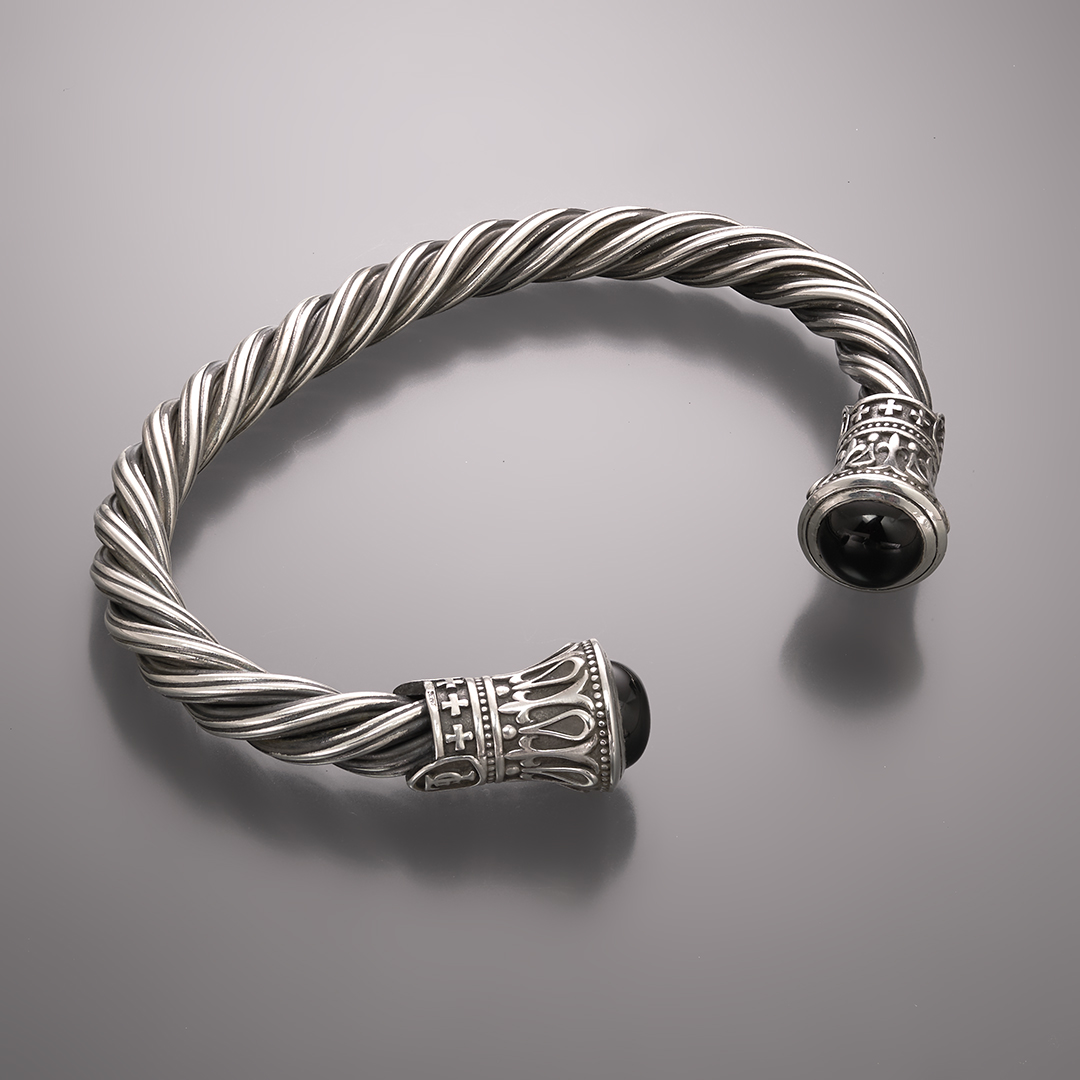 Браслет вдохновлен духом древних скандинавских воинов. В нём воссозданы формы и элементы украшений эпохи викингов, сохранившихся до наших дней.